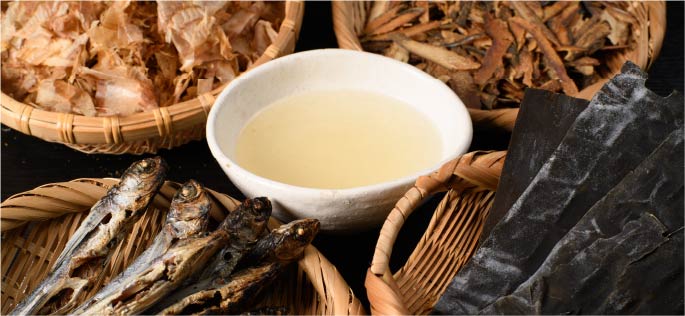 厳選した昆布・焼きあご・鰹節、鯖節で丁寧にひいた一番だし