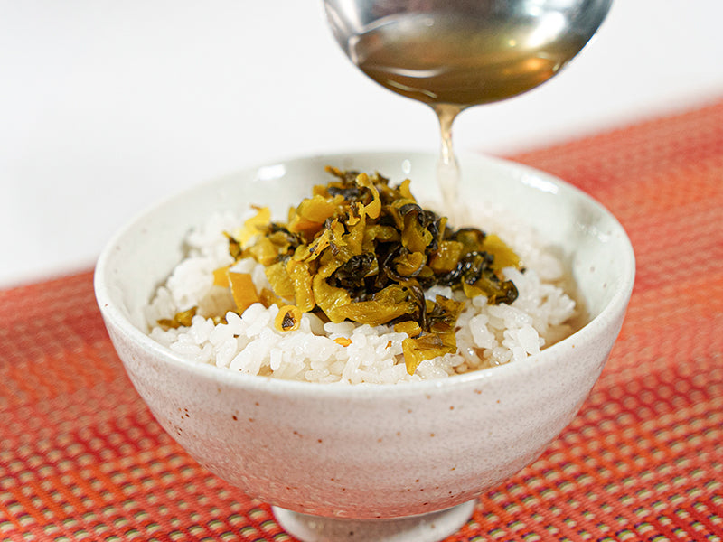 鍋のシメはだしでいただく高菜茶漬けがおすすめです!