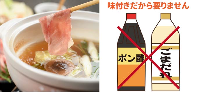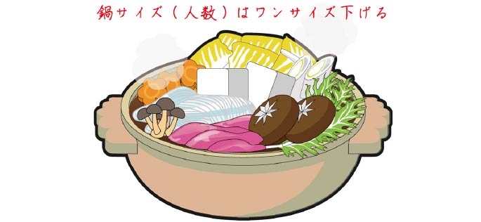 魚介やお肉は霜降り(湯通しして流水で汚れや血を洗い流す)をして、野菜は汚れを洗い、均一に火が入るようにカットしてください。そして鍋サイズを適用人数表示よりワンランク小さくしてください。例えば4~5人の場合は3~4人前用の鍋です。鍋サイズを小さくすることで、具材を入れ過ぎず、食べる量だけ煮て取り出しますので、素材本来の持ち味が十分引き出されます。